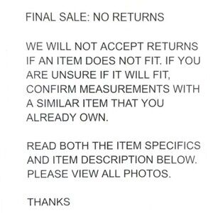 At the moment, there are no returns. I'm a new reseller, but please check at the photographs before you buy the item since I will not be able to take back return clothes once the transaction is finalized!