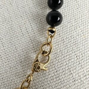 Vintage Monet Black Bead Necklace 15" Knotted Gold Patented Clasp Signed