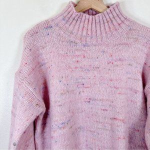 Club Monaco Ocallah wool blend bell sleeve sweater in pink confetti knit. High mock neck, wide sleeves, drop shoulders, and rib knit cuffs and hem. Lovely, soft, thick and warm knit. Boxy fit. Excellent condition, worn a handful of times by me but it's not getting the love it deserves here. Still in the same conditioned as I purchased it and true to photos. Knit blend (body): 37% Alpaca Wool, 35% Polyamide, 26% Wool, 2% Other Fiber. Size medium.