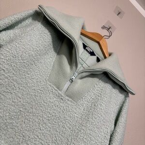 Stay cozy and stylish with this light sea foam green fleece sweater that’s made with quality fabric. Has some nice weight to it, and is perfect for layering, offers warmth and comfort for any occasion.
