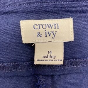Keywords: Crown & Ivy shorts, women's shorts, navy blue shorts, flat front, size 14 shorts, capri shorts, casual shorts, summer shorts, basic shorts, everyday wear, Ashley fit