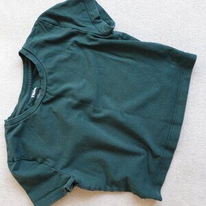 Forest green crop top and sweat shorts. They've been loved for sure but they look great. Their stuff looks perfectly distressed after you break it in.