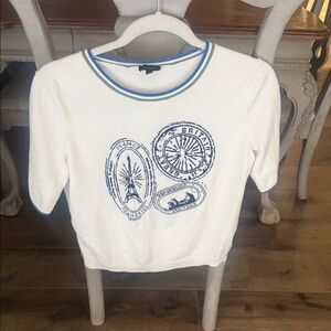 Cream Graphic sweater by Talbots with Blue Accents