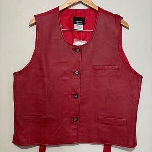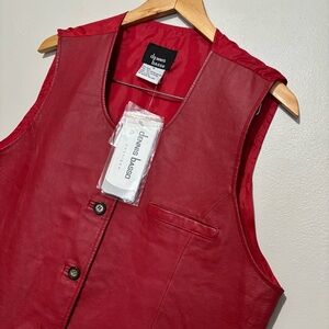 Dennis Basso Red Leather Tuxedo Vest Pockets Size 1X nwt VTG Deadstock