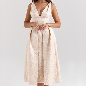 HOUSE OF CB - PALOMA NWT AND PROTECT TAG- Ivory Metallic Jacquard Midi Dress