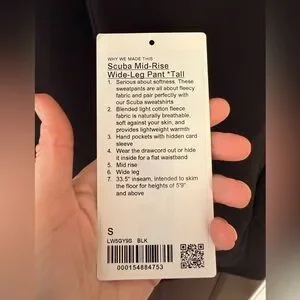 Lululemon Tall Scuba Mid Rise Pants Tall Small S Black Sweats Wide Leg