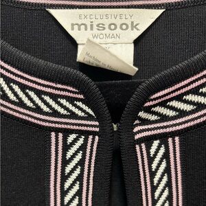 Exclusively Misook Open Cardigan Front Pockets Black Pink White Trim Size 2X