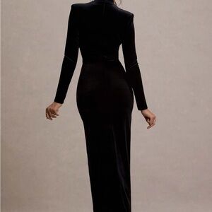 Black Velvet High-Neck Gathered Split Maxi Dress