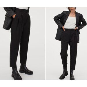Ankle-length pants in woven fabric. High waist, waistband with covered elastic at back, and zip fly with concealed hook-and-eye fasteners. Pleats at front and shaping darts at back. Diagonal side pockets, mock back pockets, and legs with creases.