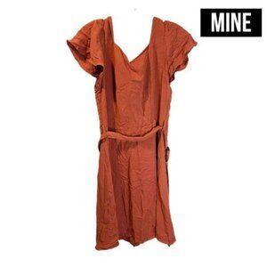 MINE Women's Casual Summer Ruffle Sleeve Buttoned Down Short Dress with belt