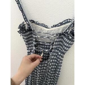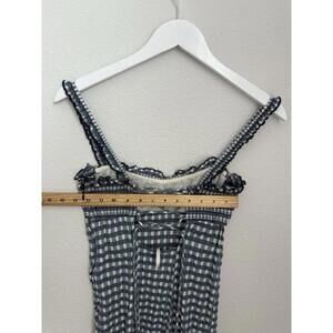 New Free People Lucinda Plaid Print Tank Midi Dress Smocked Ruched Ruffle XS