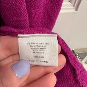 Eileen Fisher Size Large 100% Linen Magenta Open Cardigan Sweater Half Sleeves