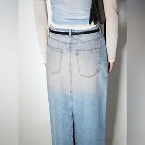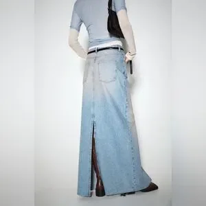 ZARA Z1975 PINK WASHED SLIT DENIM SKIRT