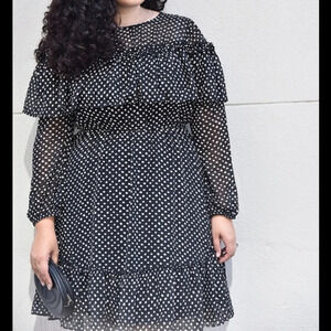 Lane Bryant Size 14 Polka Dot Black and White Knee Length Romantic
