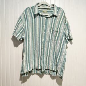 Vintage LL Bean Textured Striped Button Up Shirt Short Sleeve Blue Mens XXL
