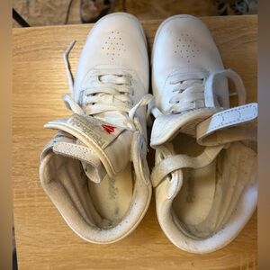 **VINTAGE” Reebok White High Tops 80’s style leather Freestyle women's sneakers.