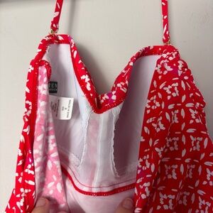 Lauren Ralph Lauren Two Piece Halter Tankini Swimsuit Red and White 4/6