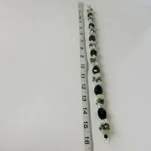 Ross-Simons Sterling Silver 925 Chunky Statement Heavy Bead Choker Necklace with Jade Green Lace, Black Agate & White Quartz Genuine Gemstones