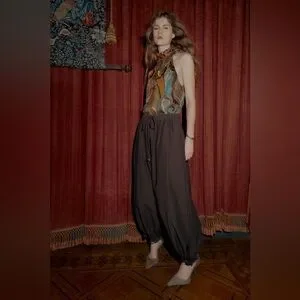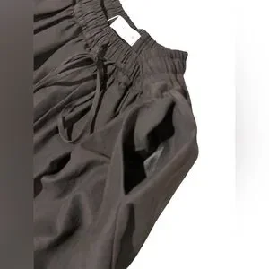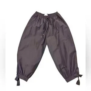 Dark brown pull-on balloon/barrel pants from Zara. Drawstring and elastic waist. Ankle ties.