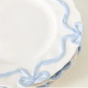 Anthropologie Benedita Bow Stoneware Side Plates | Set of 4 | Glossy Blue | NIB
