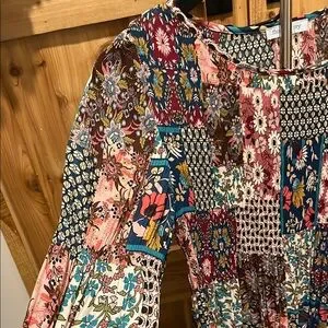 Elevate your style with this vibrant floral patchwork blouse. Perfect for adding a pop of color to any outfit.