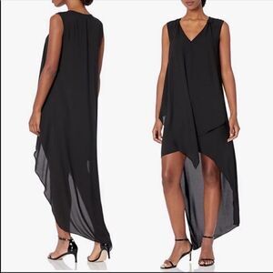 BCBGMAXAZRIA Tara Sleeveless Cascade-Ruffle High-Low Midi Maxi Shift Dress