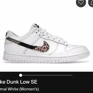 Chic and stylish Nike Dunk Low SE sneakers. Crisp white with eye-catching leopard print detail. Perfect for casual wear.