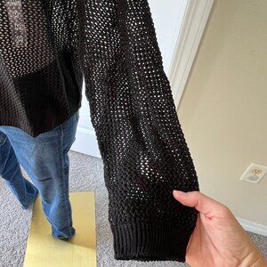 Uniqlo women's 3D knit mesh long-sleeve crewneck sweater, size medium. Color black. Bust 35-37 inch. Acrylic / lyocell / linen. NWT