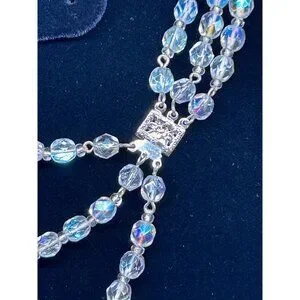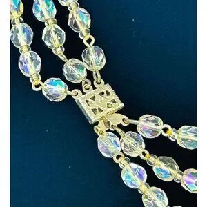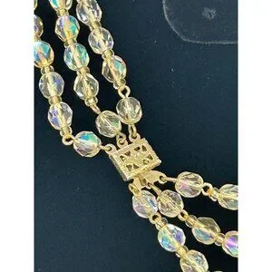 Aurora Borealis Glass Necklace 3 Strand Graduated Length 17 in Silver-tone Clasp