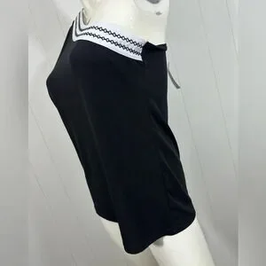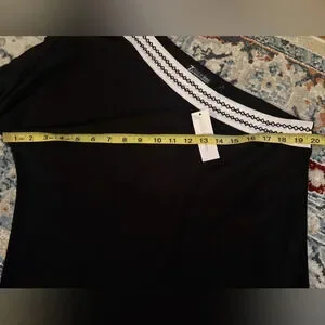 NWT NY & CO Women’s Sz M one shoulder black white blouse 3/4 Sleeve stretch