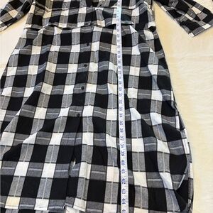 Stylish black and white plaid shirt dress. Features a button-up front and mid length sleeves. Boxy street style. Brand new.