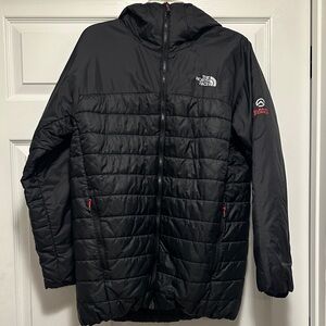 Sleek black puffer with quilted design. Features full zip and hood. Ideal for cold weather. Side zip pockets. One interior zip pocket. Excellent condition other than one spot on the hood that has been stitched. See last photo.