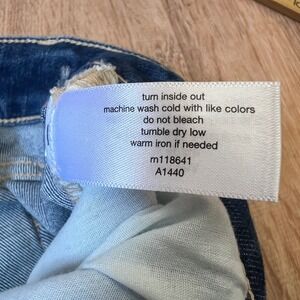 Lane Bryant straight leg jeans in a medium wash denim feature beautiful white floral embroidery on the lower legs and back pocket. Constructed from a comfortable stretch denim blend with Tencel lyocell, these jeans offer a flattering fit with classic five-pocket styling and a zip fly with button closure. The intricate vine and flower detailing adds a feminine, boho-inspired touch to a versatile everyday staple.