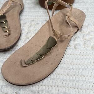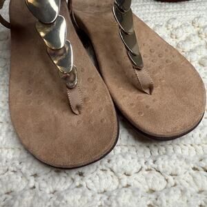 - VIONIC Women's 9 Rest Miami Supportive Sandal Thong Ankle Strap Tan Gold Cork -