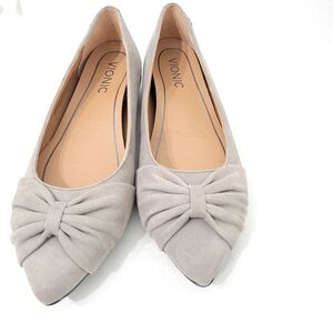 Vionic Women's Gramercy Poin Toe Gray Bow Flats Size 6