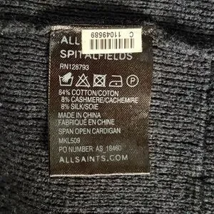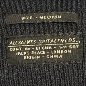 All Saints Dark Navy Open Front Cotton Cashmere Blend Sweater Size Medium EUC