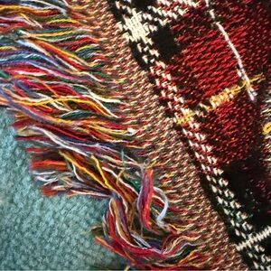 Vintage Teddy Bear Woven Blanket Tapestry Plaid Fringe Throw Cozy Decor