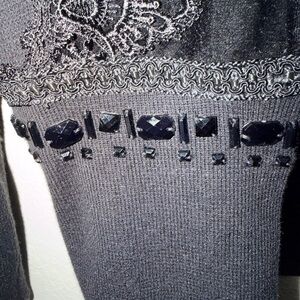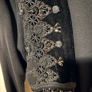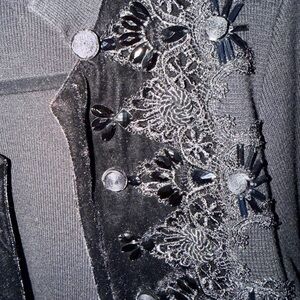 Chico's blazer with intricate black embellishments. Perfect for elevating any outfit.