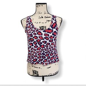 Forever 21 Red & Navy Leopard Print Sleeveless Crop Top - Size M