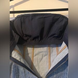 Elegant strapless dress in classic blue. Perfect for versatile styling. NWT Denim mini dress Fitted Strapless Exposed zipper back closure 94% cotton, 5% elastomultiester, 1% elastane Dry clean only Imported Firm price