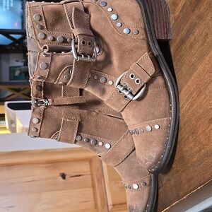 Sam Edelman Drea Studded Suede Tan Moto Boots Ladies 6.5