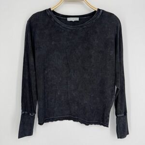 Joah Brown Vital Long Sleeve Top One Size Charcoal Grey Ribbed Minimalist Lounge