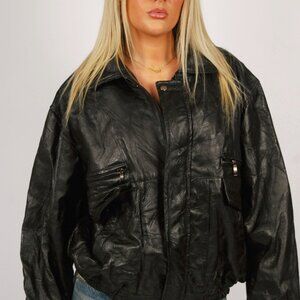 90s Textured Leather Jacket (L) large black vintage patchwork bomber moto goth