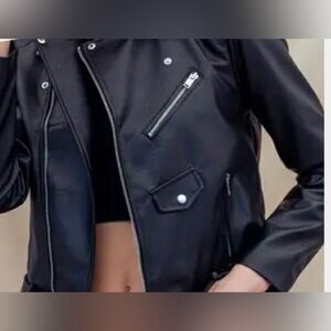 Love Tree Faux Leather Biker Moto Jacket Black, Size Women small