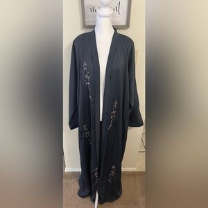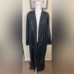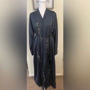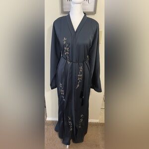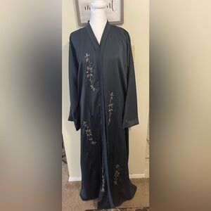 Elegant Abaya kimono robe with floral embroidery. Perfect for lounging or as a stylish cover-up.