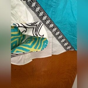 Bold geometric design with blue and black accents. Unique style for casual wear.