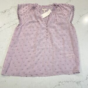 Rebecca Taylor NEW Embroidered Silk Blend Whimsy Coquette SS Ruffle Top Lilac L