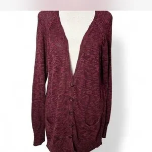 🏁Mudd XL burgundy V-Neck button down cardigan pockets