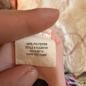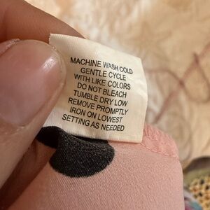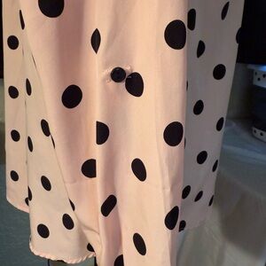 Chic button-down shirt with striking black dots. Soft blush fabric. Perfect for versatile styling. Sleeves are adjustable, small stain shown in picture, not obvious, otherwise in great preowned condition