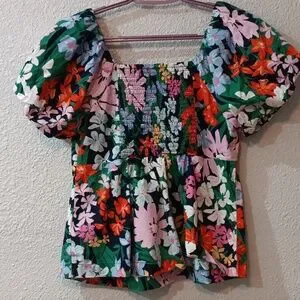 Old Navy Multicolor Floral Blouse, Ladies Summer Floral Top, Ladies Size M
